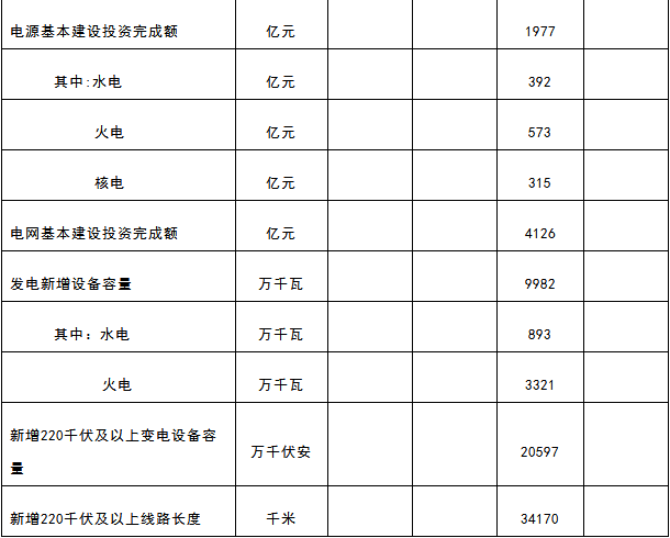 國家能源局公示:全國1-10月份電力工業數據表