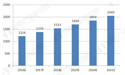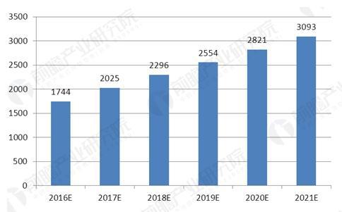 2016-2021年中國合同能源管理行業(yè)投資規(guī)模預(yù)測圖(單位:億元)