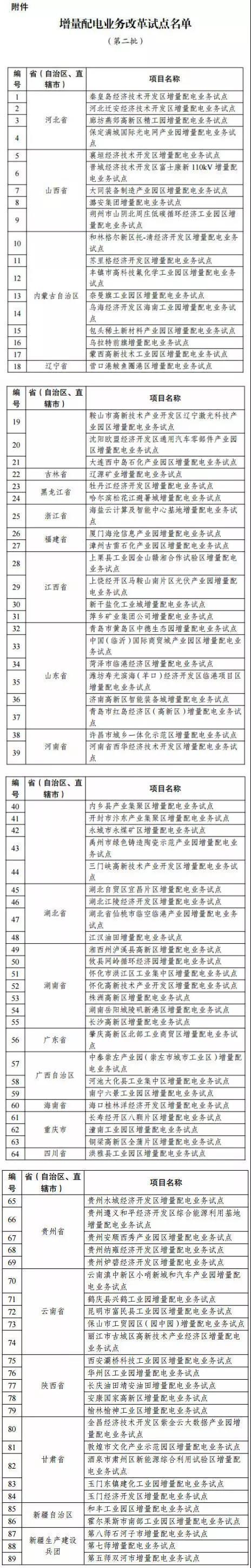 附件:增量配電業(yè)務改革試點名單(第二批)