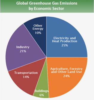 發電(25%),交通(14%),工業部門(21%)和建筑(6%)是碳排放的4個主要來源。