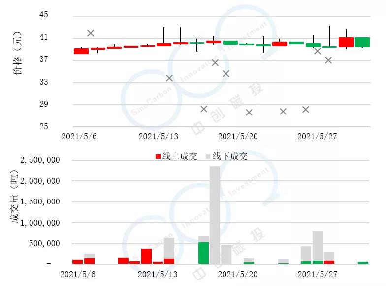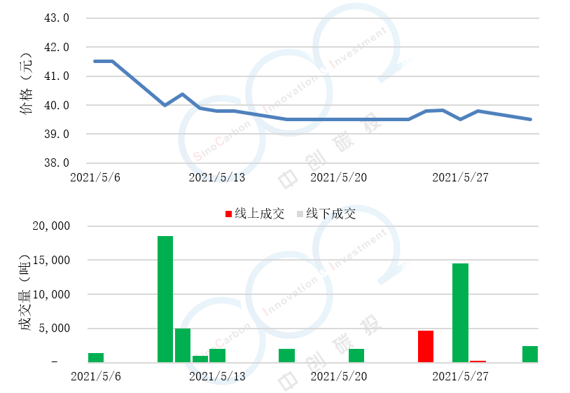 - 線(xiàn)上成交價(jià)最低為39.50元,最高為41.50元,平均碳價(jià)為39.93元。