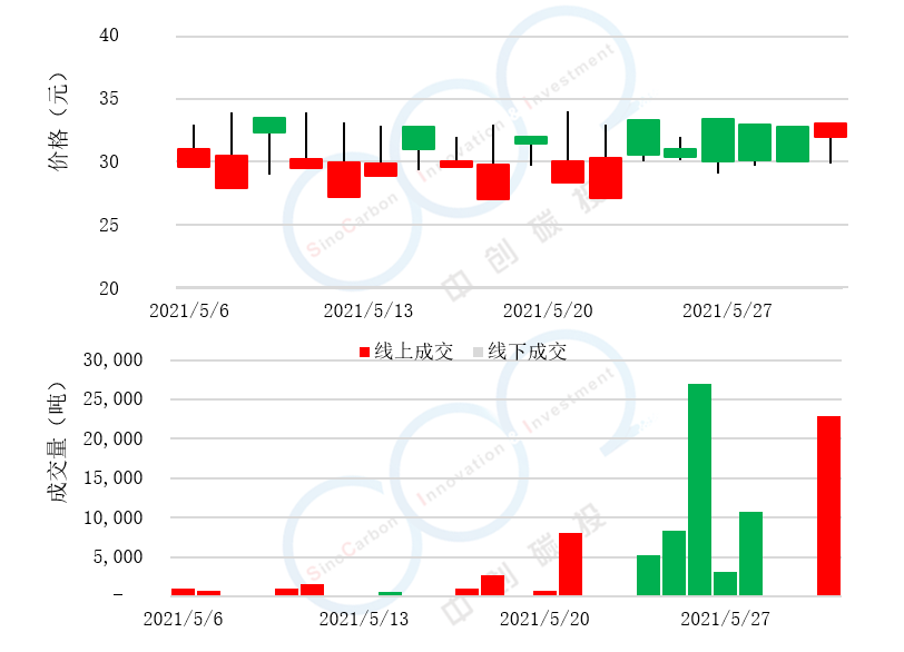 - 線(xiàn)下成交價(jià)最低為20.80元,最高為29.15元,平均碳價(jià)為24.99元。