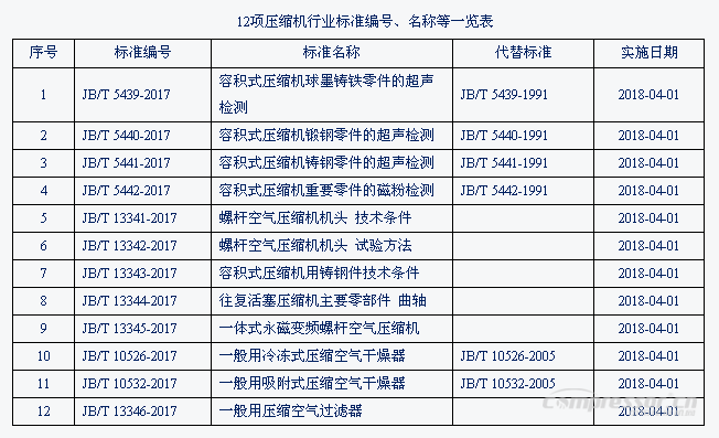 國家壓標(biāo)委發(fā)布壓縮機行業(yè)5項國家標(biāo)準(zhǔn)和12項行業(yè)標(biāo)準(zhǔn)