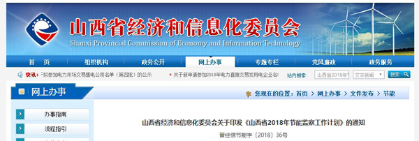 山西省經信委印發:《山西省2018年節能監察工作計劃》的通知