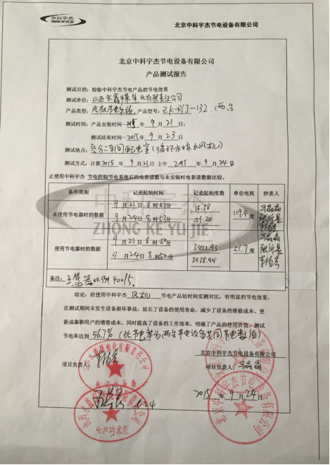 經過山西永鑫管理人員的嚴格審核,中科宇杰智能風機節(jié)電系統(tǒng)的節(jié)能效率達到了56.7%,遠遠超過了企業(yè)的預期,山西永鑫的管理人員對中科宇杰的工程人員表示感謝和贊揚。在要求如此嚴格的情況下,中科宇杰仍然能設計出如此高效能的節(jié)能系統(tǒng),獲得很好的經濟效益。