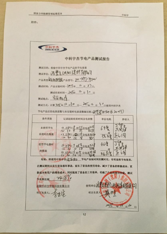 工程竣工安裝調試并驗收后,顯示節能效率達到了24.18%,節能設備安裝后,完全沒有對原設備造成不良的影響,并起了延長設備壽命,減少維修成本的作用。該試點工程得到預期效果,并得到集團領導的認可,在集團公司廣泛推廣。